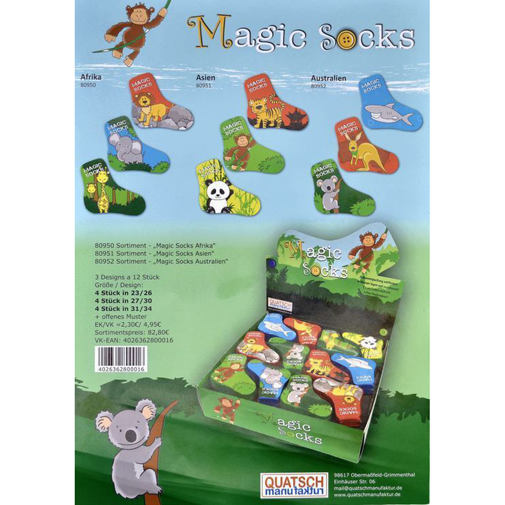 Egal ob als kleines Geschenk, Trostpflaster, nette Geste, für Kindergeburtstage oder Motivation beim Anziehen - unsere farbenfrohen MagicSocks-Kindersocken mit drei verschiedenen Tieren aus AFRIKA, ASIEN oder AUSTRALIEN bringen Freude, ein bequemes Tragegefühl und tierischen Spaß mit sich.